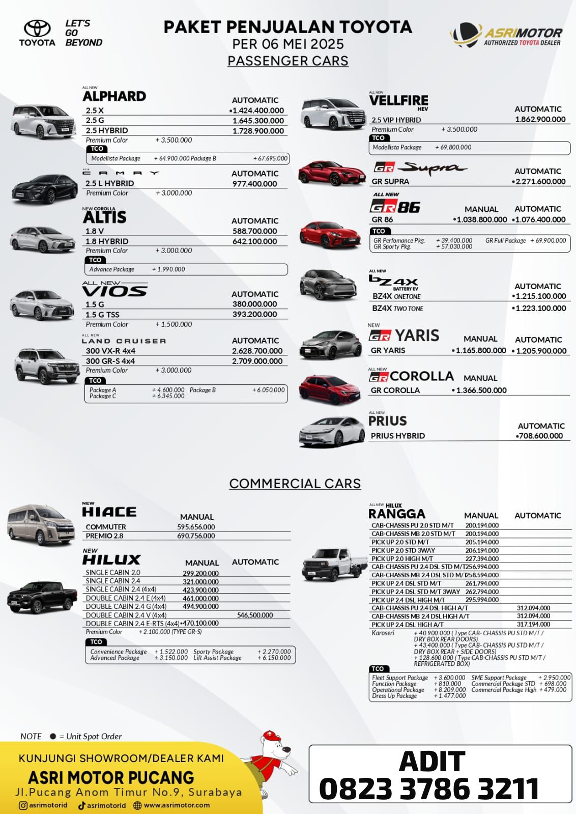 Info Lebih Lanjut, Hubungi: Aditya Resya Pratama Telp/Wa : 0823-3786-3211 Facebook : Adit Toyota Jawa Timur Tiktok : adittoyotaam Instagram : adittoyotaam ToyotaSurabayaCenter.Com